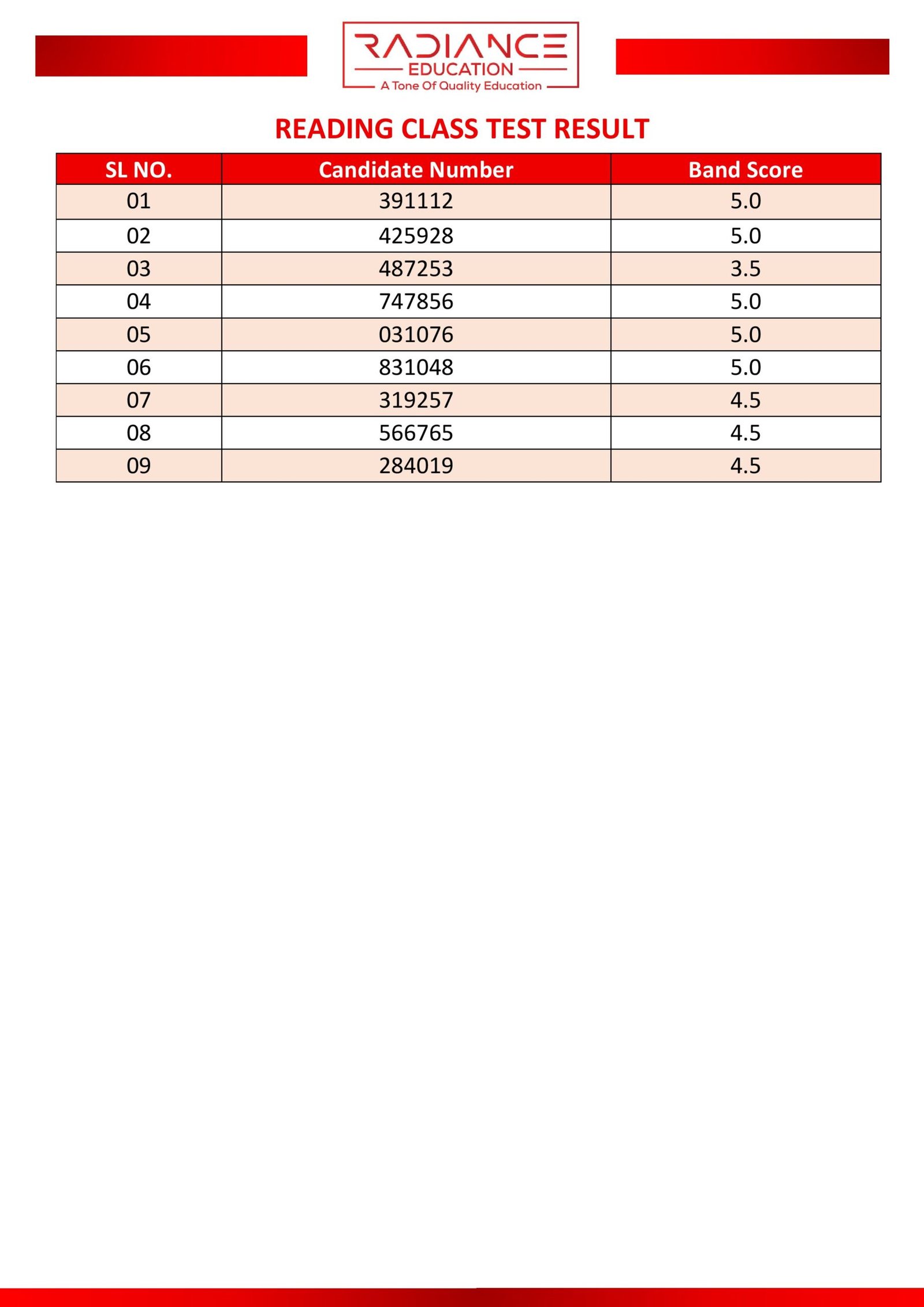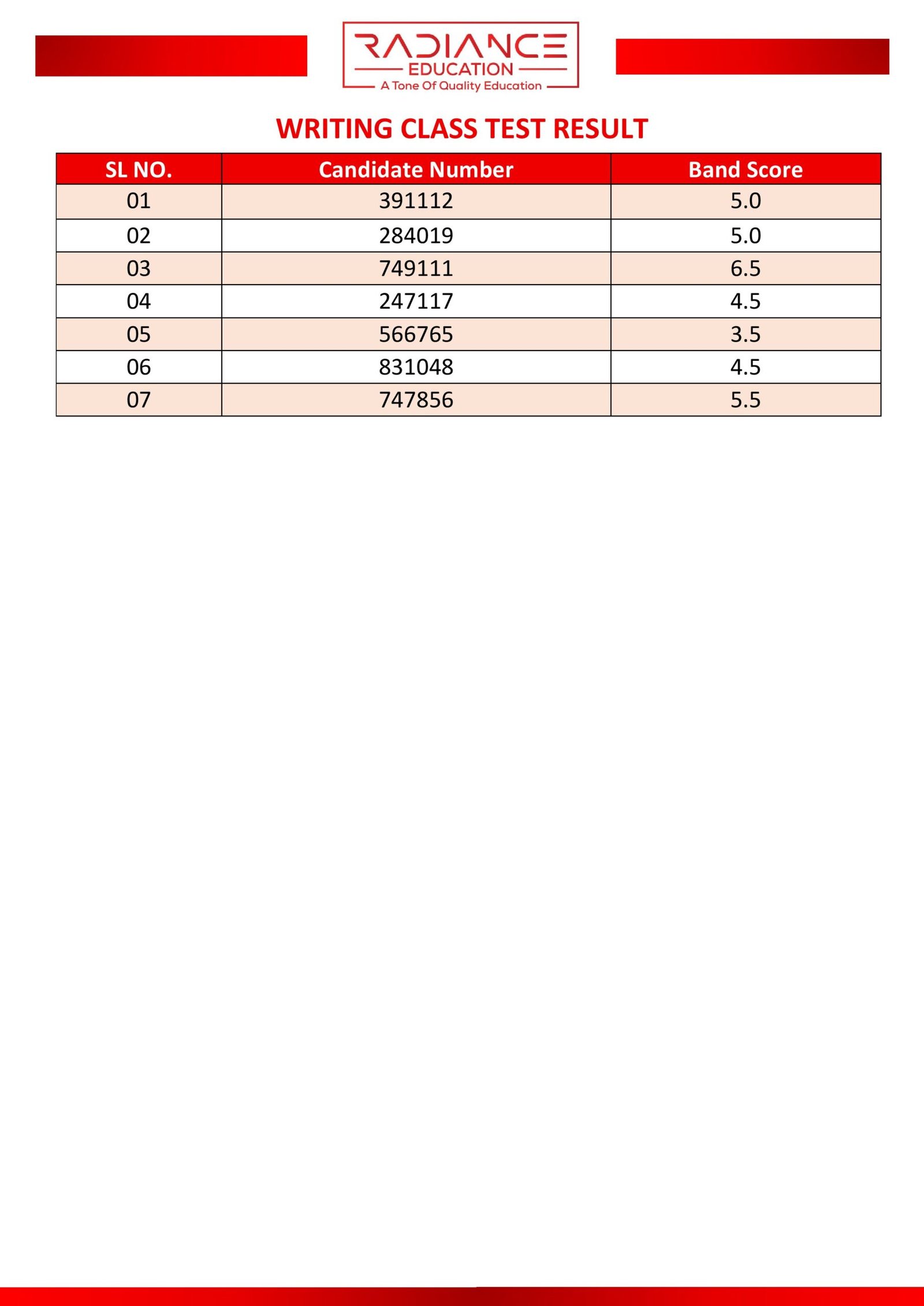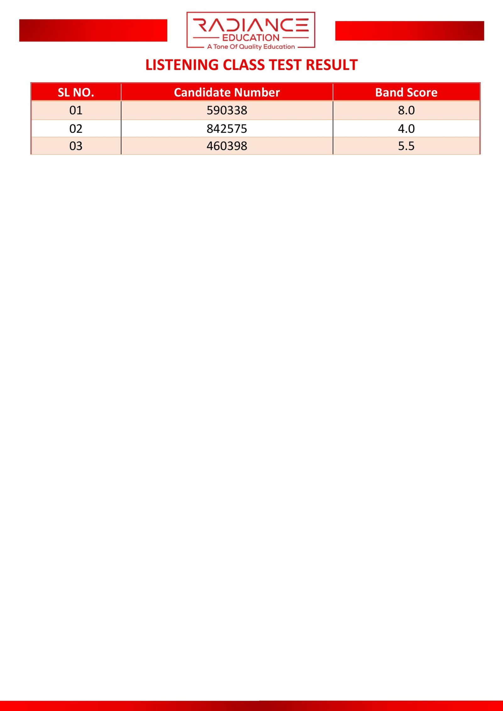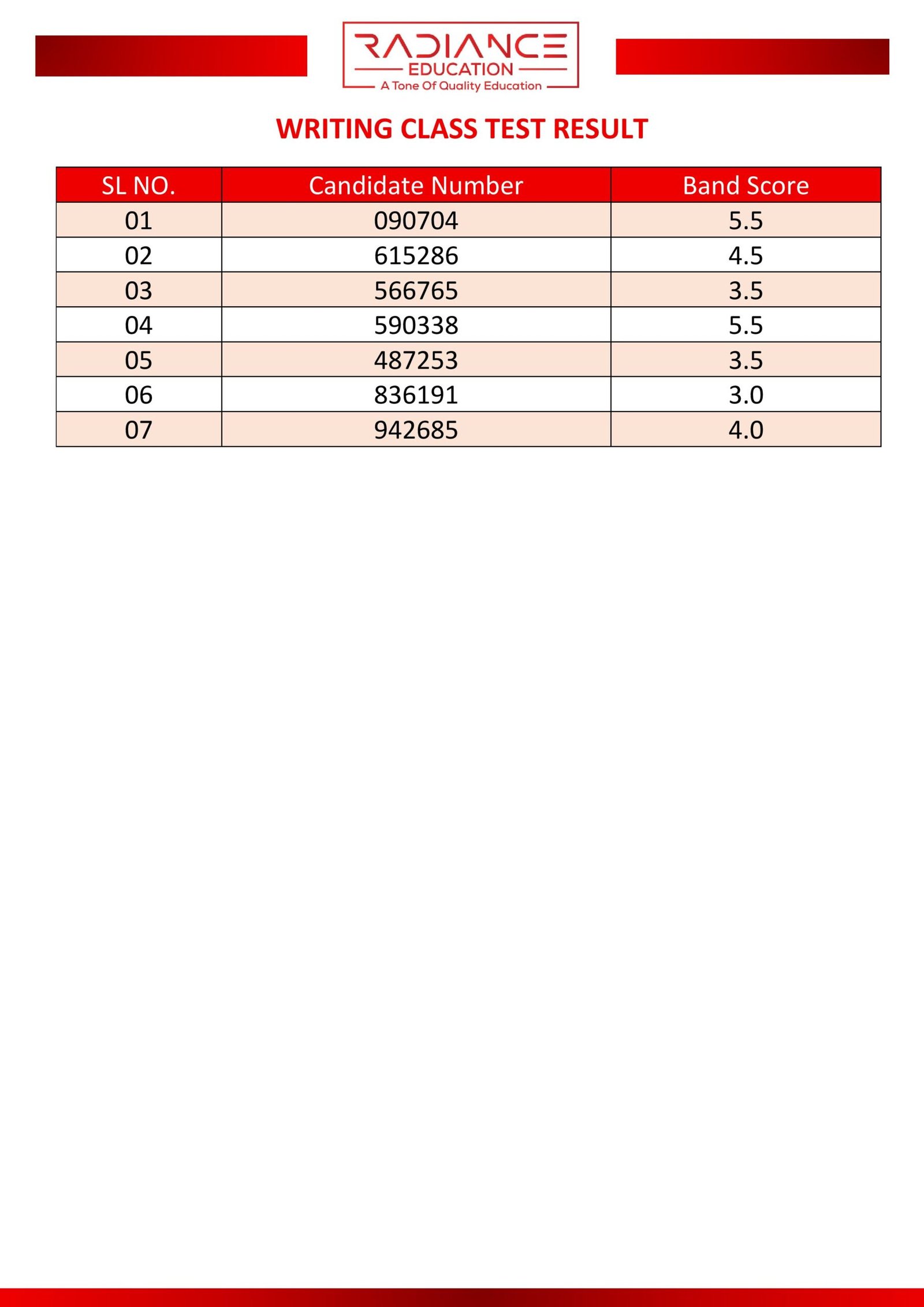 Here you can view the results of your most recent class or partial test.