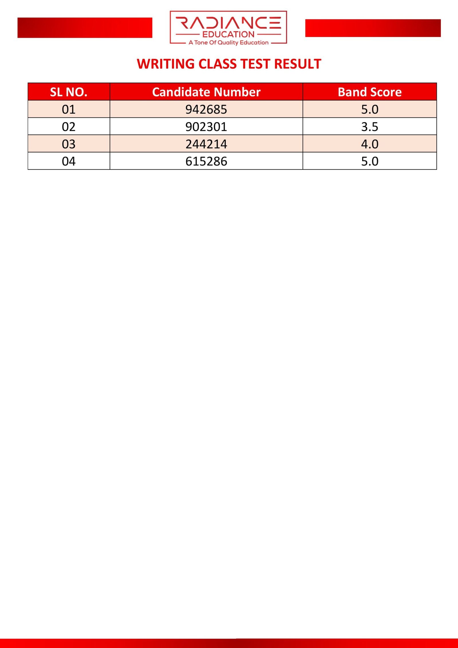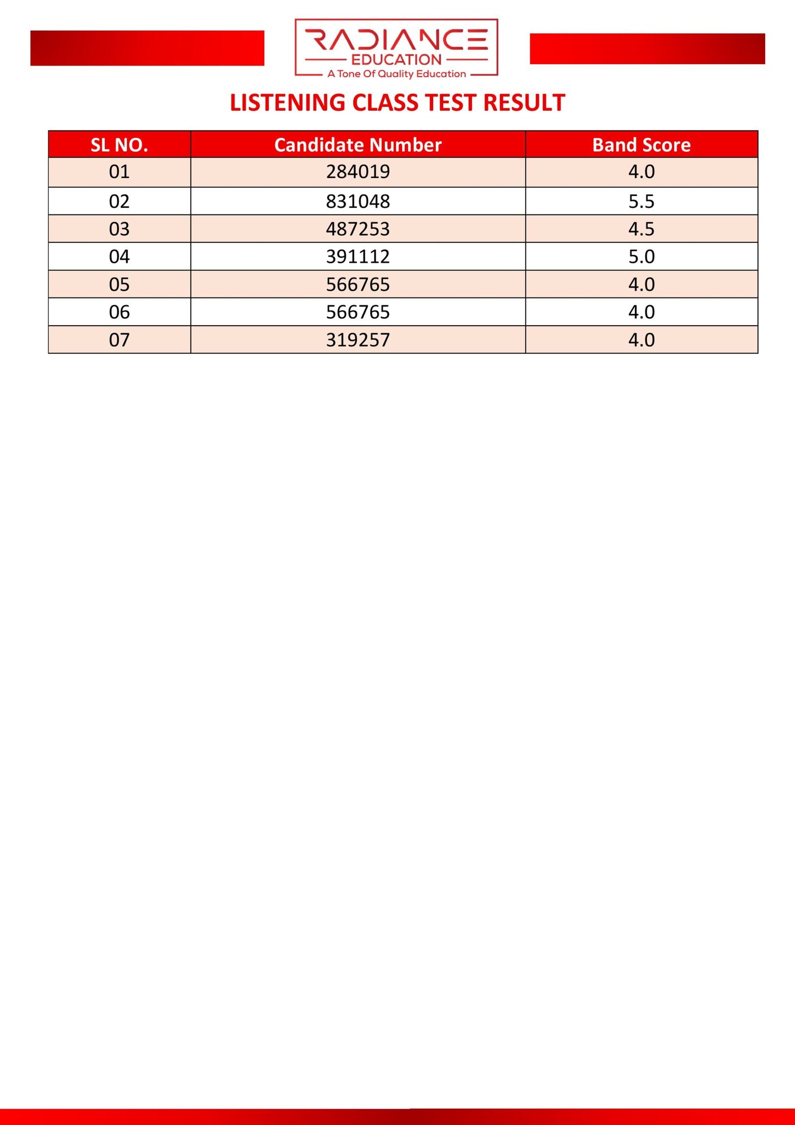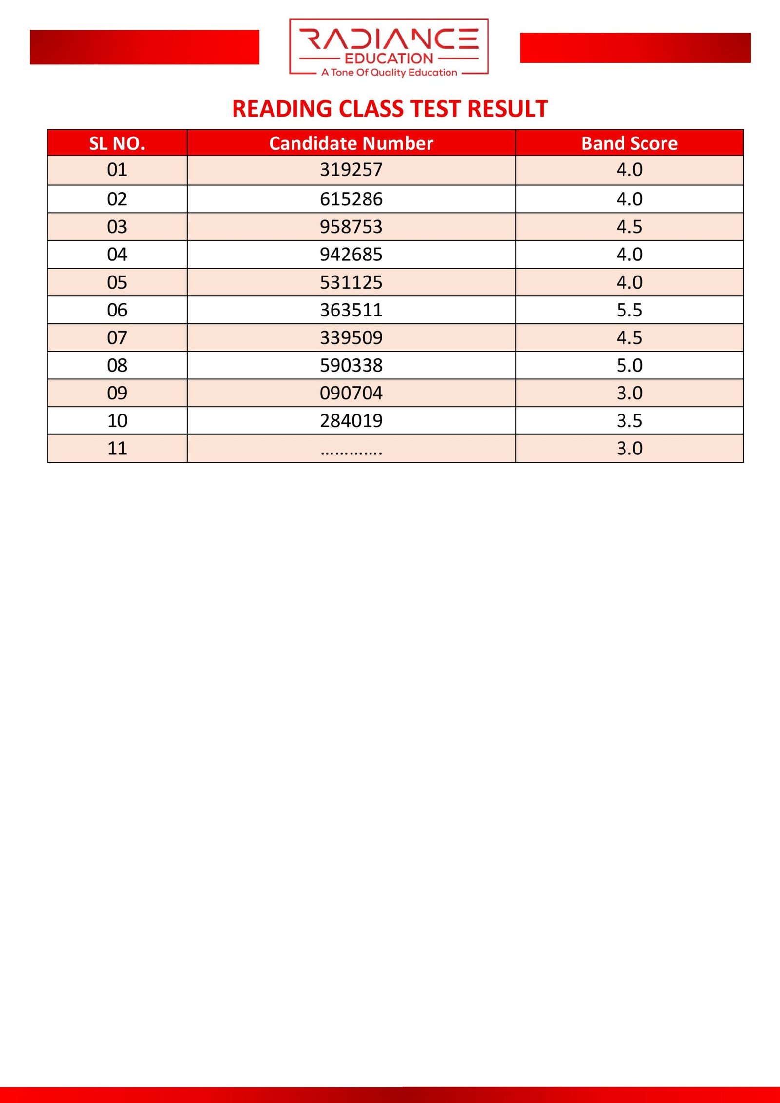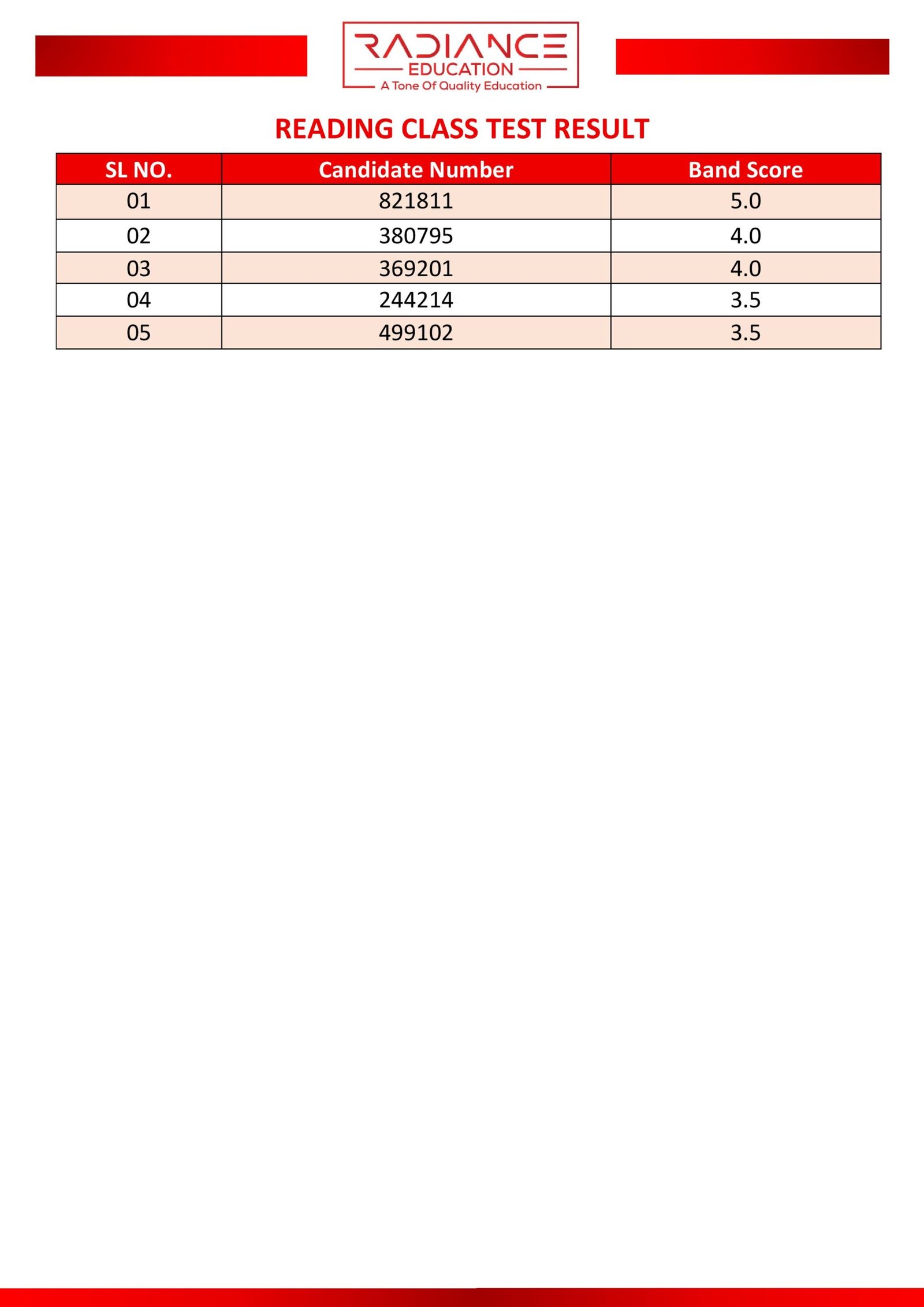 Here you can view the results of your most recent class or partial test.