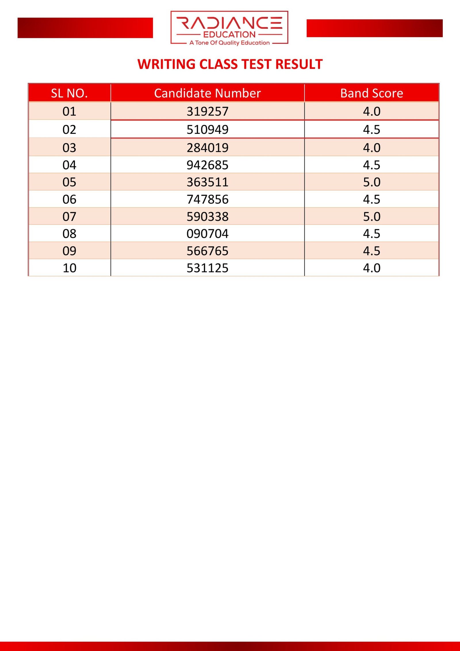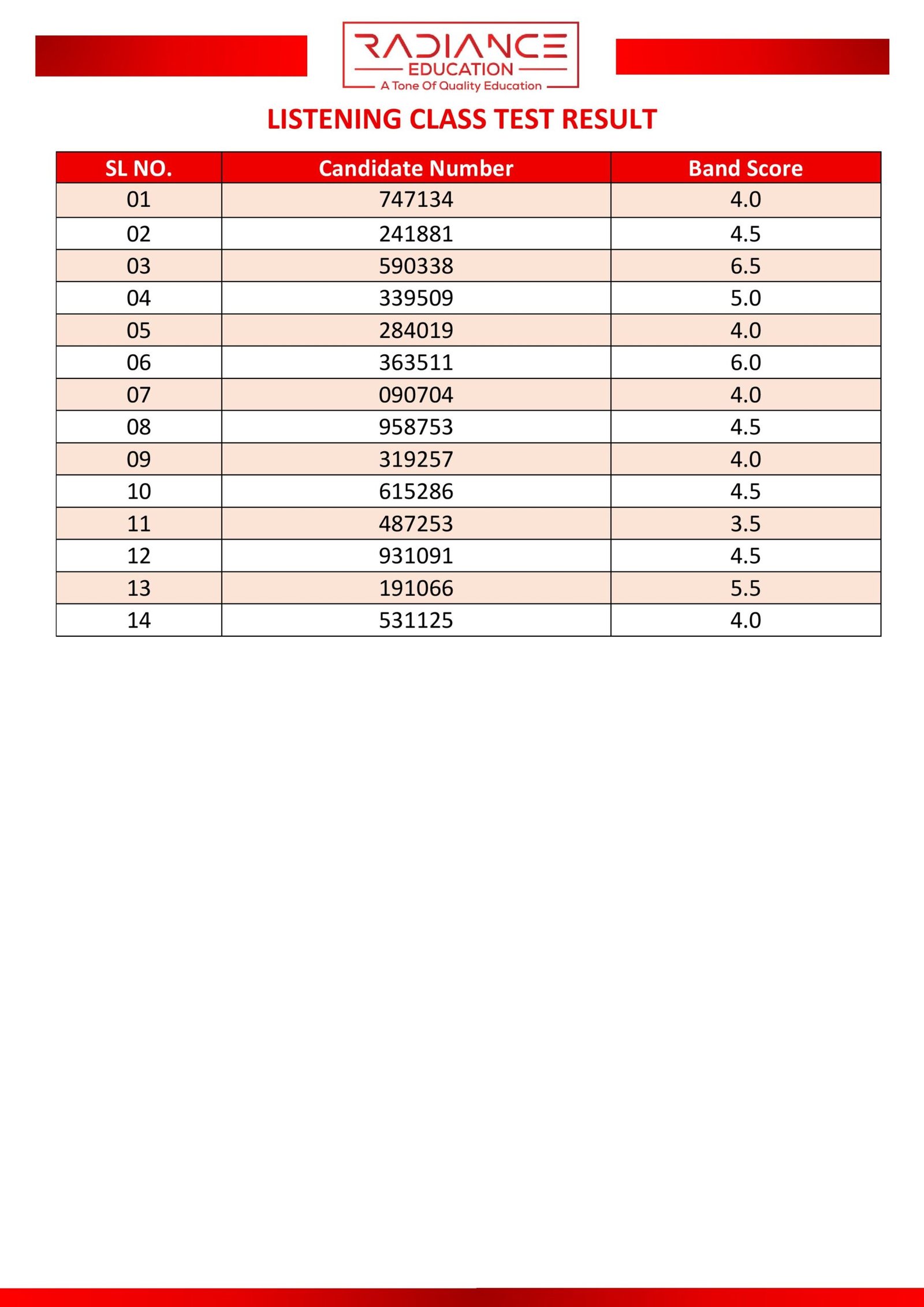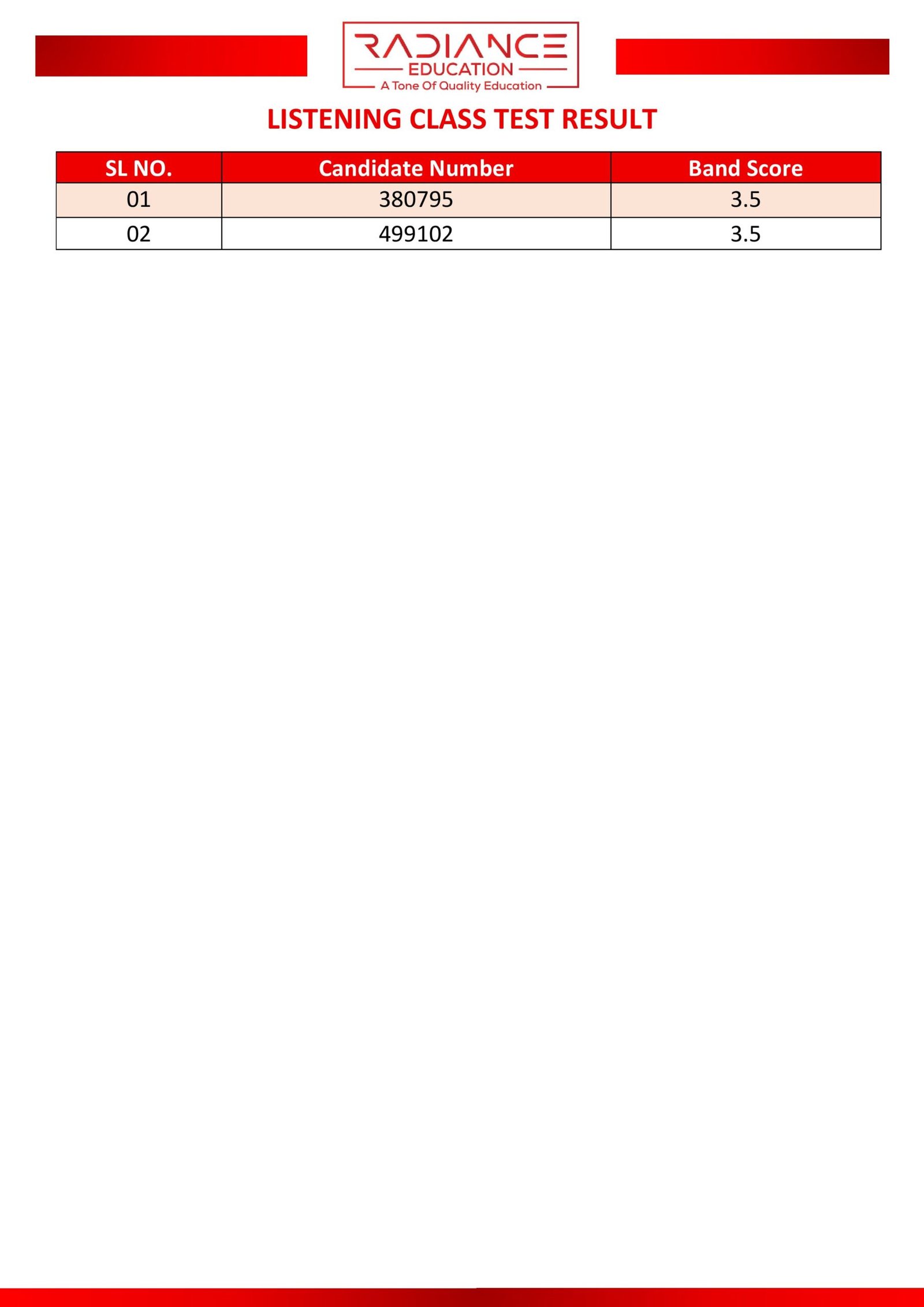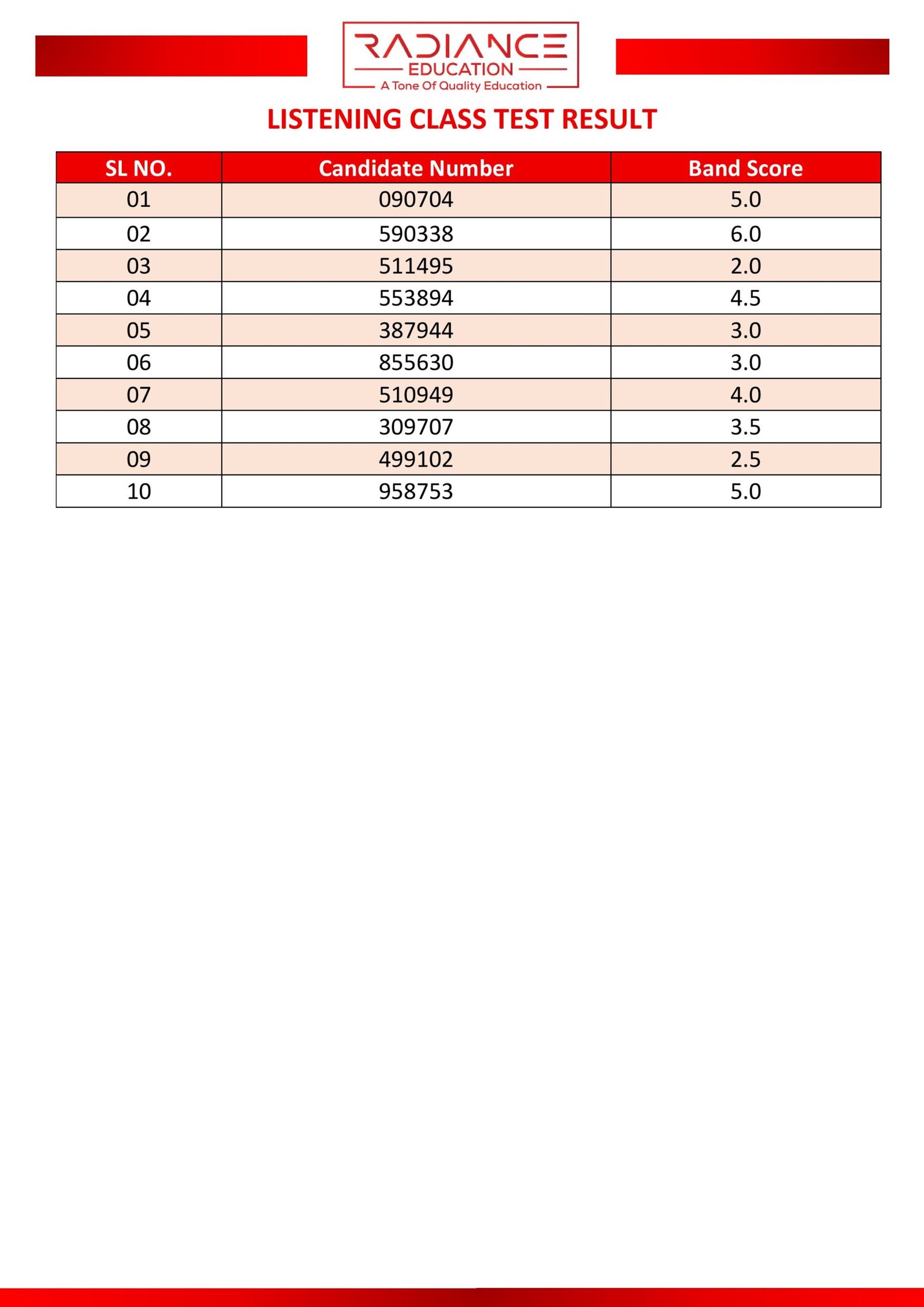Here you can view the results of your most recent class or partial test.